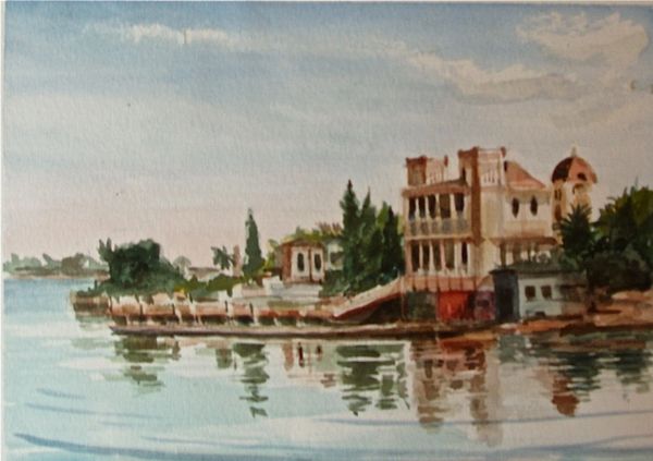 From May, 2000, to February 2002, my late husband Jim Melcher and I sailed the Mediterranean and Atlantic seas. I recorded more than 200 small images in color pencil and watercolor, averaging 5.5x3.5 and 4.25 x 6. Here are a few, painted on site.