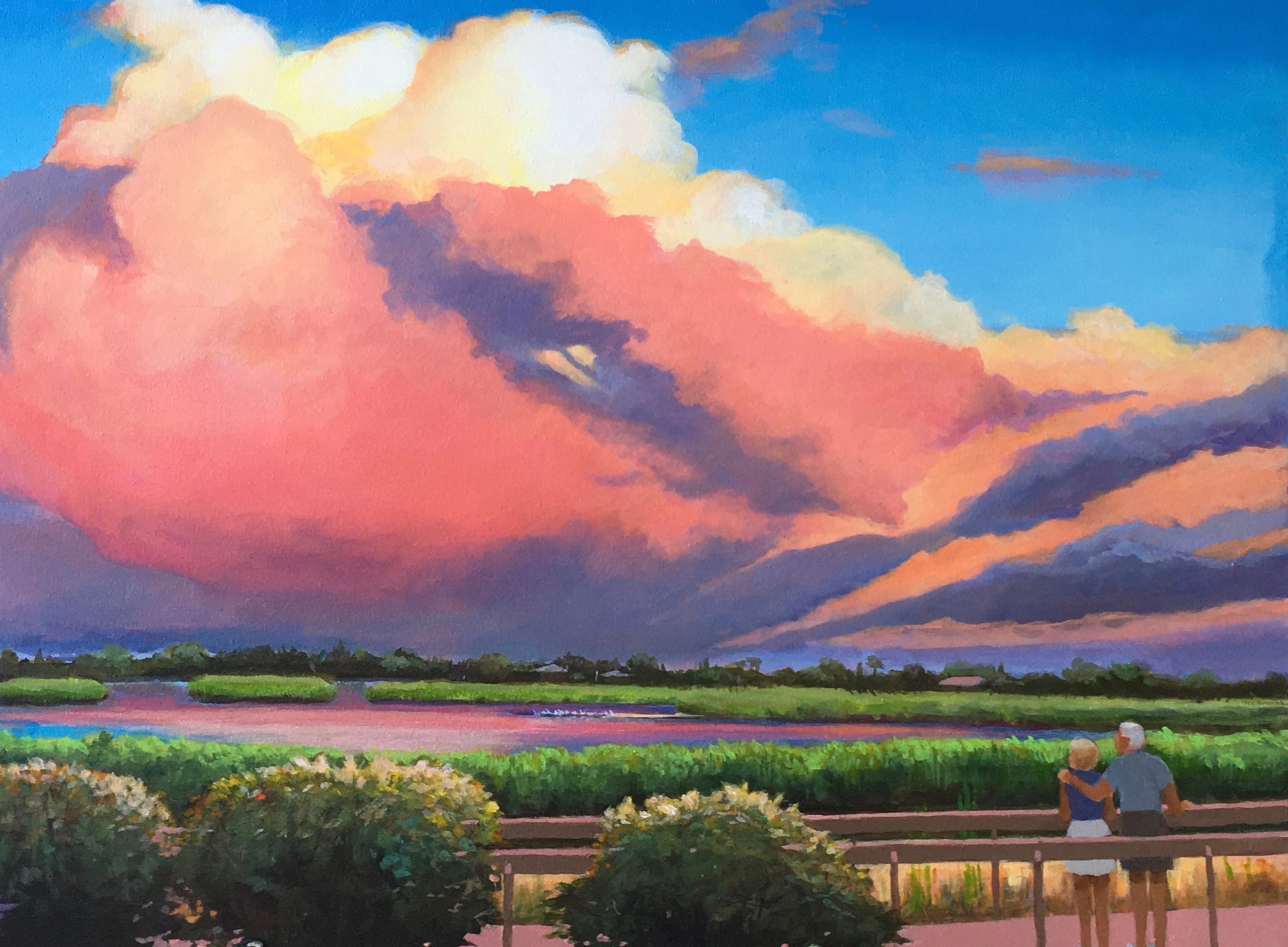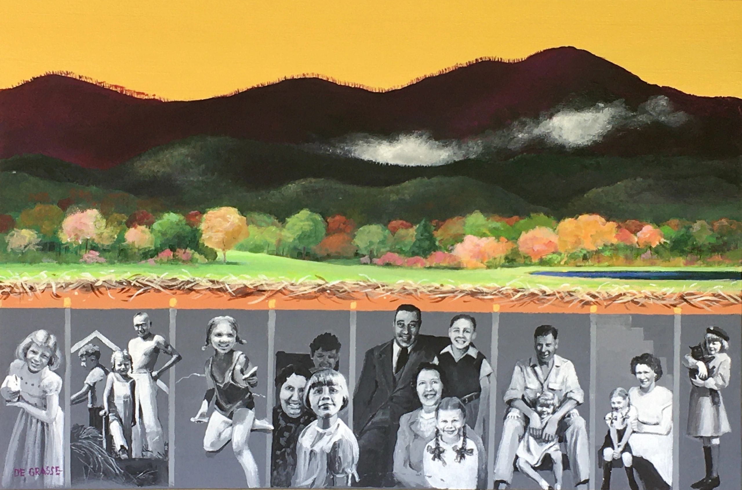 Working in a variety of materials on different surfaces, I use canvas, paper and panels with acrylics, watercolor, oil and pastel. Years in design and publishing produced print advertising, illustration and book design.